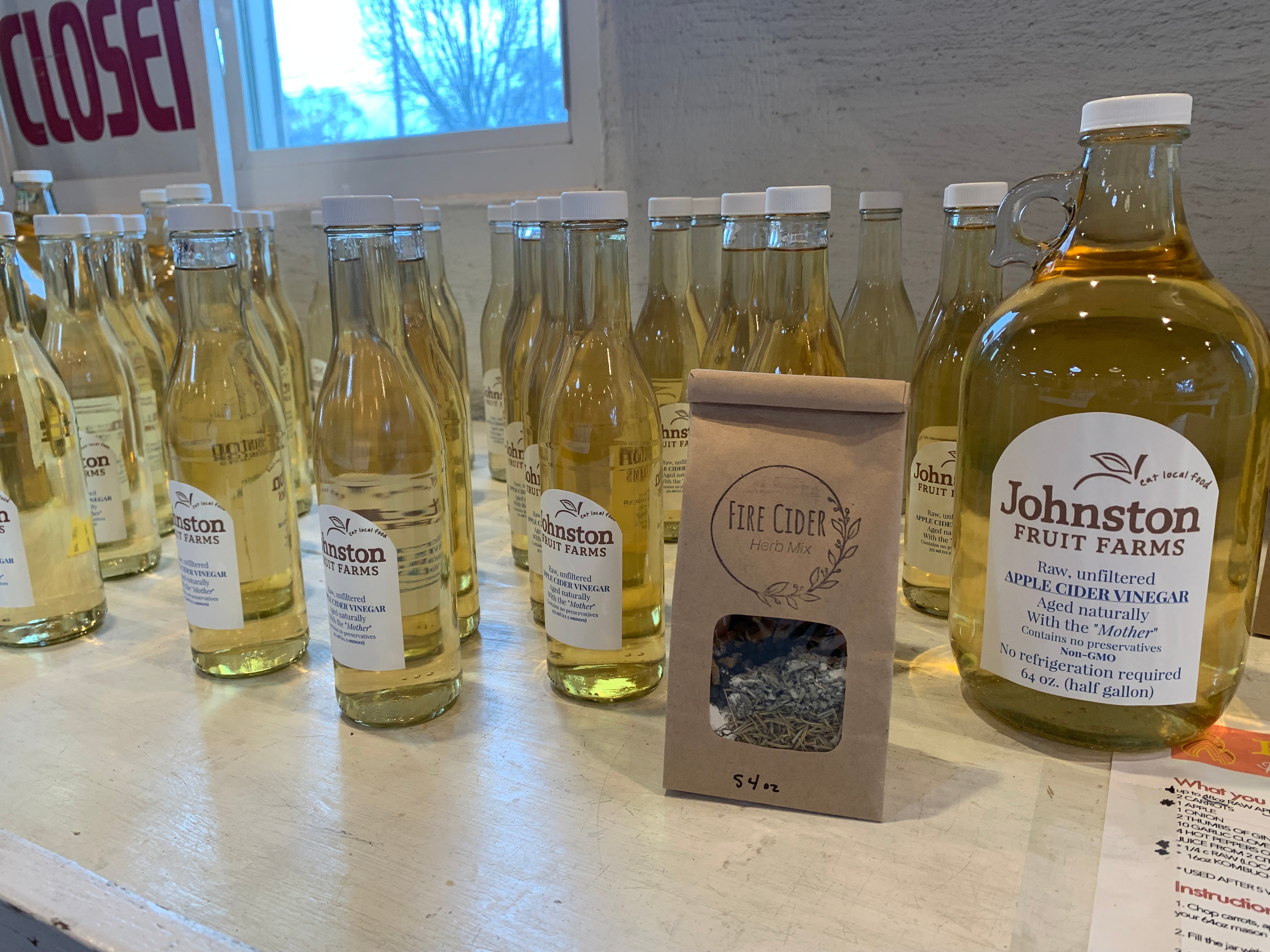 Raw vinegar made with our un-pasteurized cider here at Johnston Fruit Farms! We make our vinegar through the slow and natural process in small batches with the "mother". Then bottled unfiltered, and never diluted, just straight from the spigot!